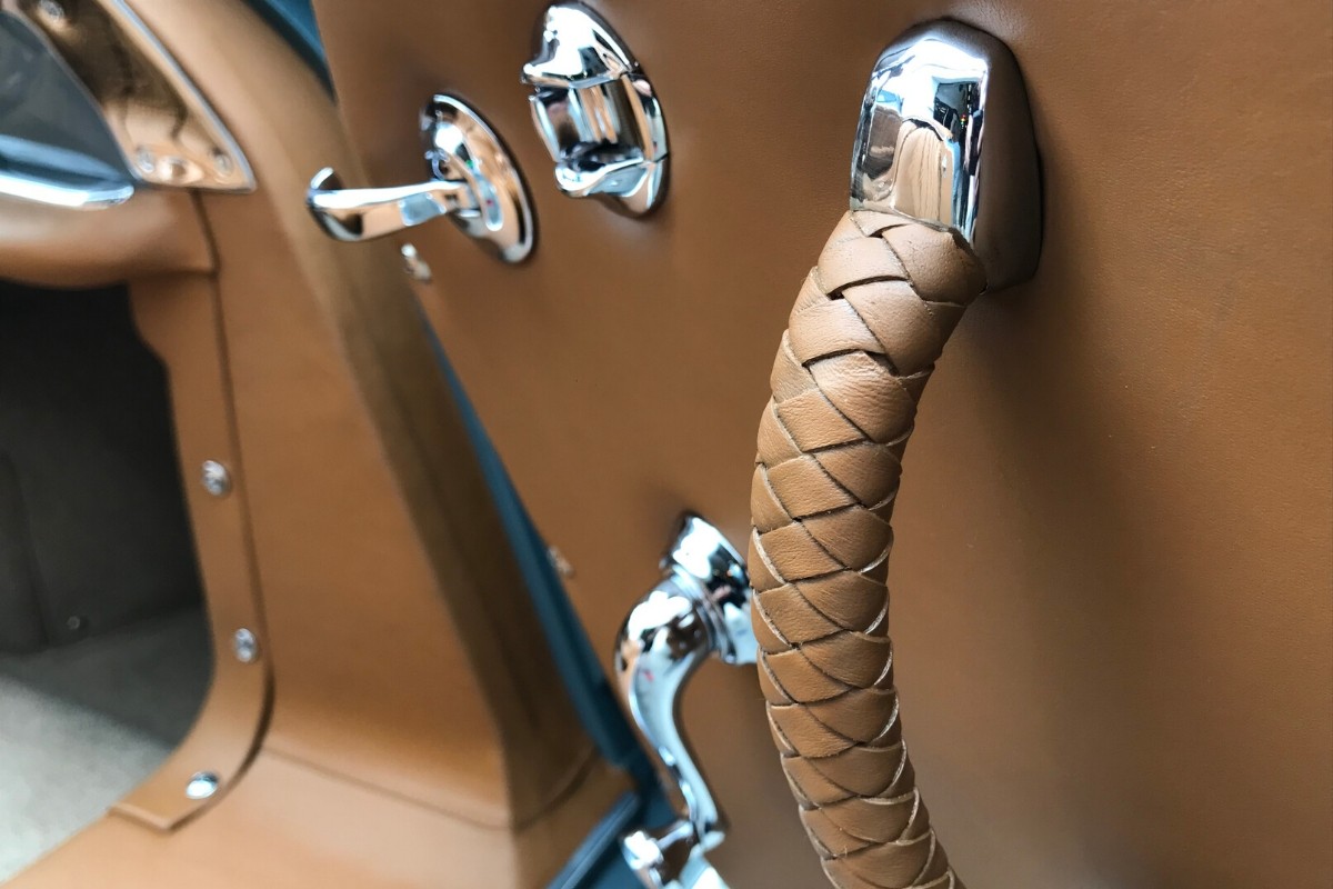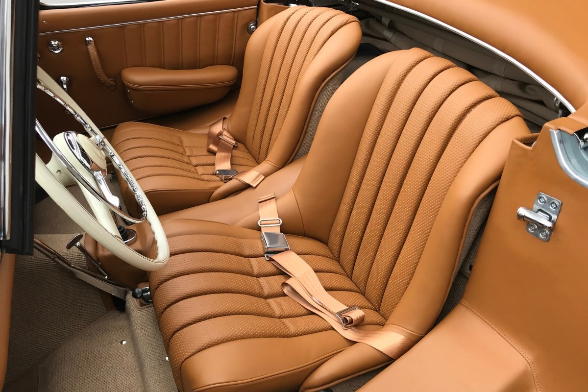 The interior restoration of a Mercedes 1958 300SL Roadster. We used Old Timer in Bamboo. It’s just a beautiful vehicle as you can see…